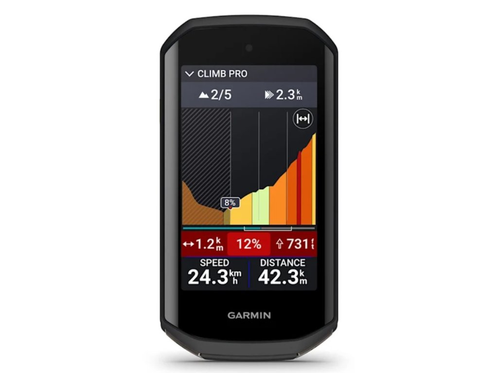 Garmin Edge 1050 je prémiový GPS cyklopočítač s velkým, jasným, dotykovým displejem a vydrží až 20 hodin na 1 nabití akumulátoru. Při propojení s kompatibilním smartphonem a aplikací Garmin Connect poskytuje cyklopočítač za jízdy upozornění na nebezpečí na silnici, zprávy od ostatních cyklistů, aktuální žebříčky a další informace.