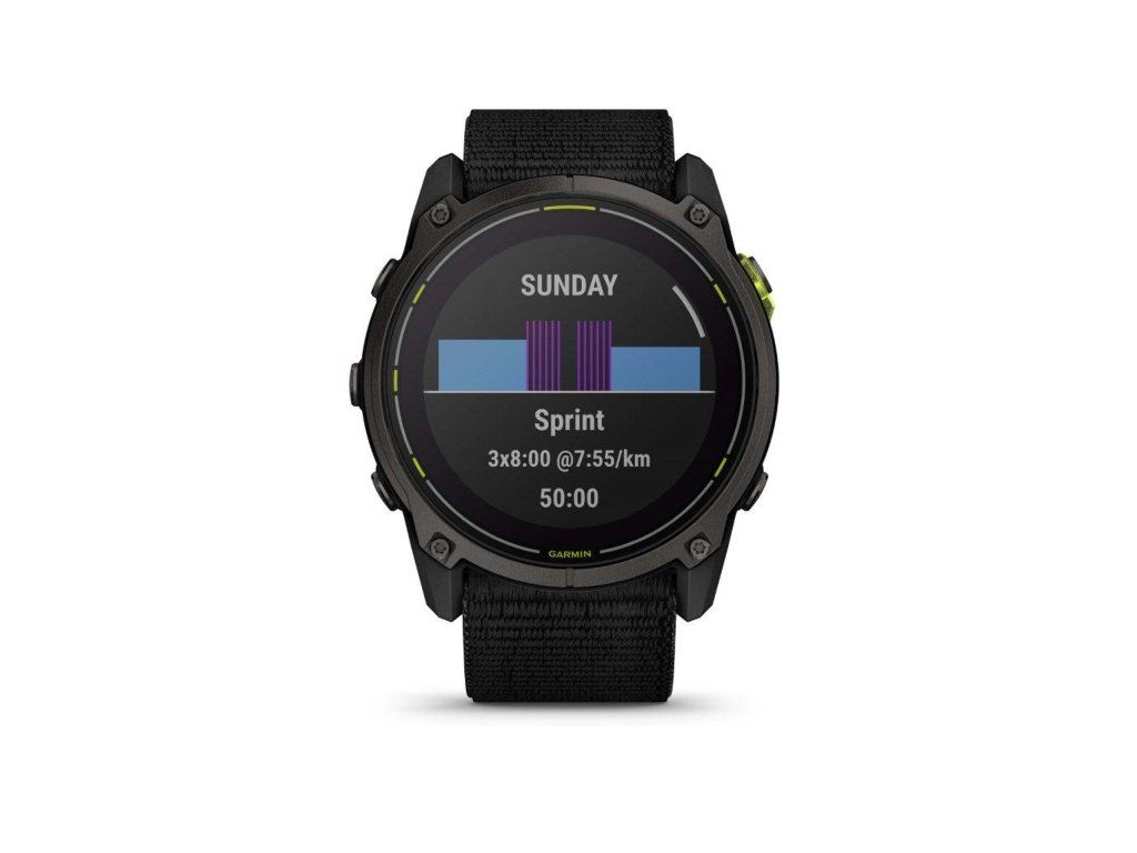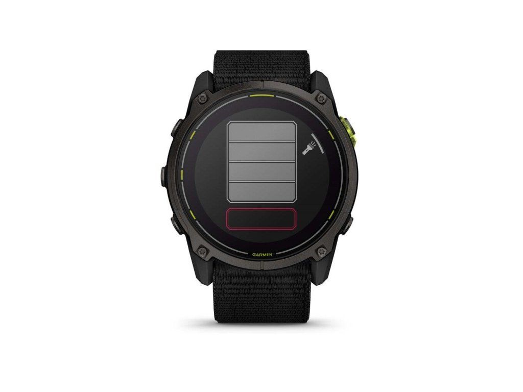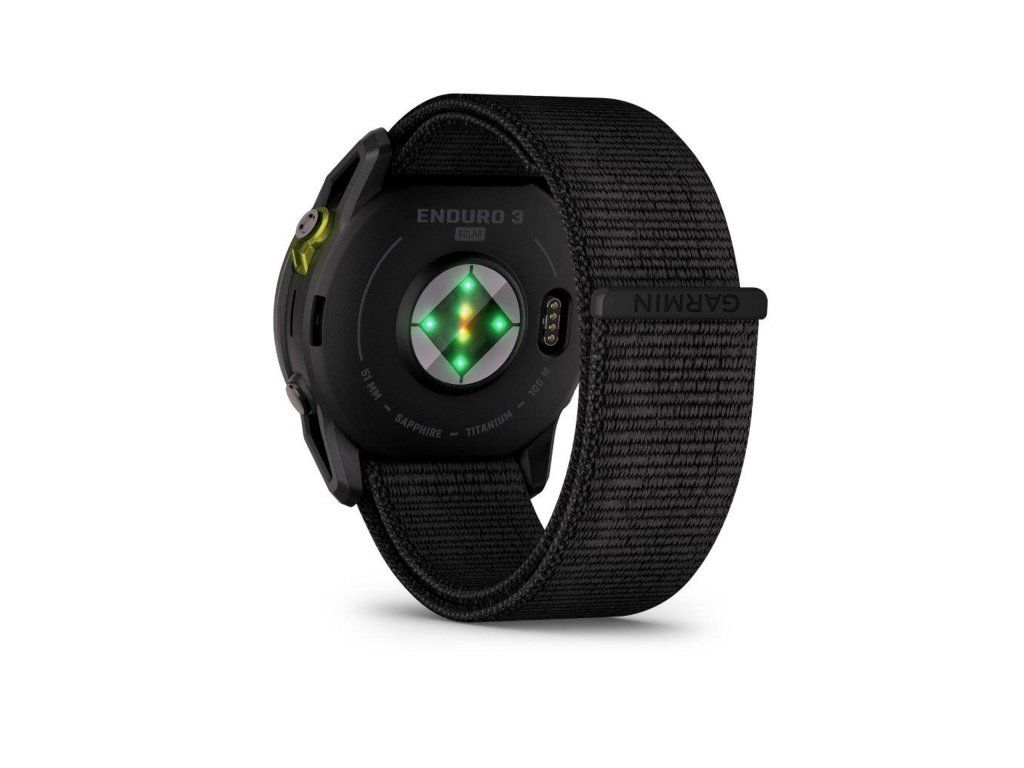 Nový Garmin ENDURO 3 je dodáván s nylonovým řemínkem a díky úspoře hmotnosti tak dosahuje pouze 63g, což je oproti podobné velikosti u Fenix 8 úspora 30g.