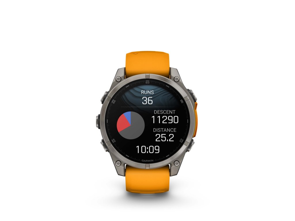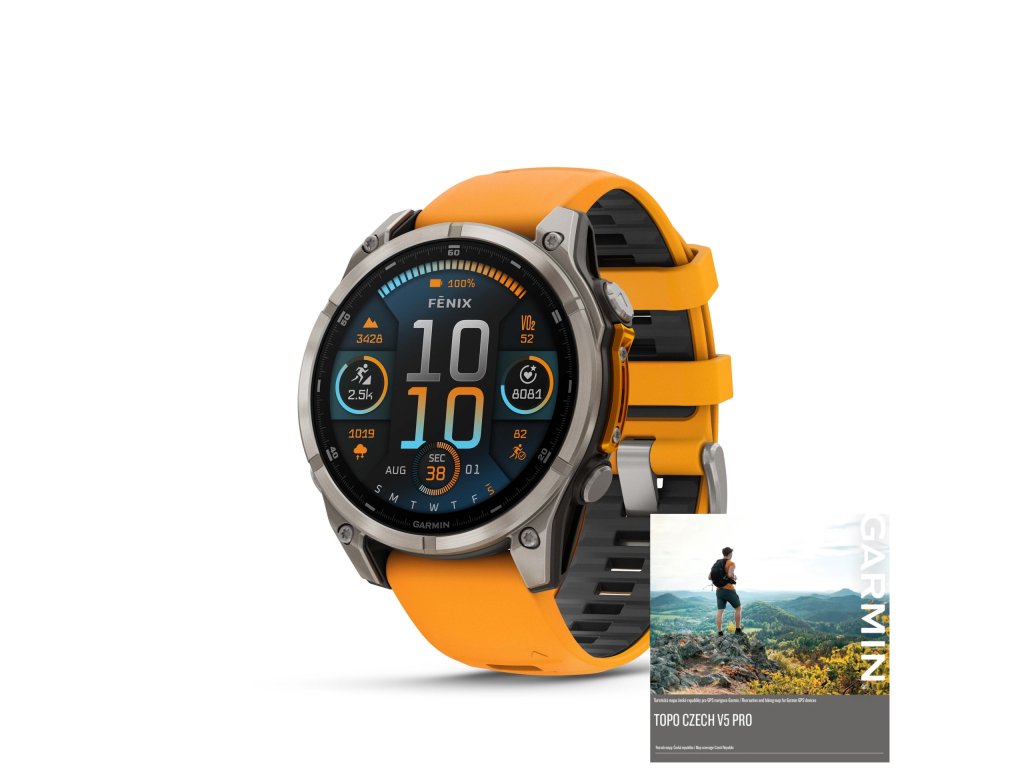 Neomezené možnosti - Chytré GPS hodinky fēnix 8 vysokou odolností, dlouhou výdrží a všestranným sportovním využitím. Mají téměř neomezené možnosti využití a pomohou vám posouvat vaše osobní hranice. Hodinky jsou vybaveny jasným 1,4″ AMOLED displejem, titanovou lunetou a výkonnou LED svítilnou s praktickým celodenním využitím. Díky integrovanému mikrofonu a reproduktoru je po spárování s telefonem možné volat přímo ze zápěstí. Pomocí funkcí pro plánování tréninků nejrůznějších sportů nebo adaptívních tréninkových plánů můžete svoji kondici rozvíjet všestranně a efektivně. Nástroje pro zhodnocení zátěže a dlouhodobé vyhodnocení tréninků vám pomohou posunout tréninky na vyšší úroveň. K dispozici je funkce vyhodnocující připravenost k tréninku, která sleduje různé parametry zdraví a kondice, jako je srdeční tep, dýchání, stres, spánek a další (prezentované údaje slouží jako přibližný odhad sledovaných ukazatelů). Při pobytu v přírodě oceníte funkce barometru, kompasu a výškoměru. Pomocí Wi-Fi připojení můžete do hodinek snadno stahovat podrobné topografické mapy. Možnost využití dynamického plánování okružních běžeckých a cyklistických tras. Po nastavení cílové vzdálenosti hodinky navrhnou okružní trasu, která se dokáže podle časových možností sama v průběhu aktivity přizpůsobit. Výdrž baterie až 16 dní na jedno nabití v režimu chytrých hodinek. Voděodolnost až do hloubky 40 metrů, vodotěsná kovová tlačítka vhodná pro plavání i potápění. Vestavěný hudební přehrávač, bezkontaktní platby Garmin Pay™ (u podporovaných platebních karet), chytrá oznámení (v kombinaci s kompatibilním telefonem) a další funkce.