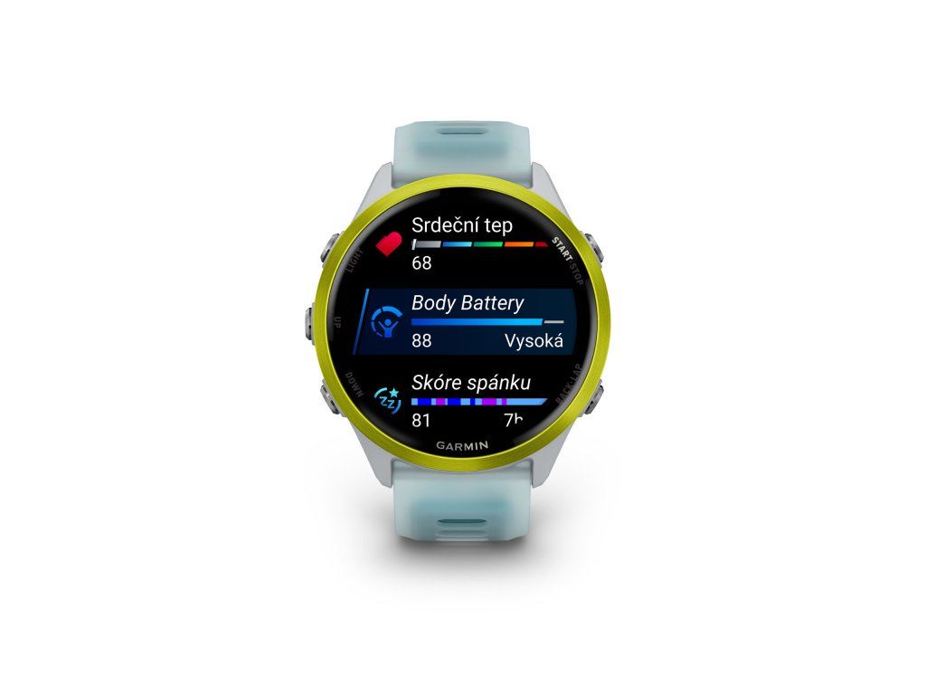 Garmin Forerunner 570 jsou chytré běžecké hodinky s GPS a naším nejjasnějším AMOLED displejem, hliníkovou lunetou a pokročilými tréninkovými funkcemi. Provedou vás přípravou na závod s personalizovanými běžeckými a triatlonovými plány Trenéra Garmin. Díky funkcím, jako je připravenost k tréninku a stav tréninku zjistíte, jestli jste momentálně připraveni na trénink a zda dlouhodobě trénujete produktivně. Mají vícepásmovou systému GPS pro přesné určování polohy v terénu. Jsou vybaveny integrovaným reproduktorem a mikrofonem, díky kterým můžete telefonovat přímo ze zápěstí (pokud jsou hodinky spárovány s telefonem). Po celém dni zobrazí večerní zprávu, která vám pomůže připravit se na další den – ukáže vám aktuální potřebu spánku, naplánované tréninky, předpověď počasí a další informace. Díky až 11denní výdrži baterie v režimu chytrých hodinek a až 18hodinové výdrži v režimu GPS se do tréninku můžete pustit kdykoli.