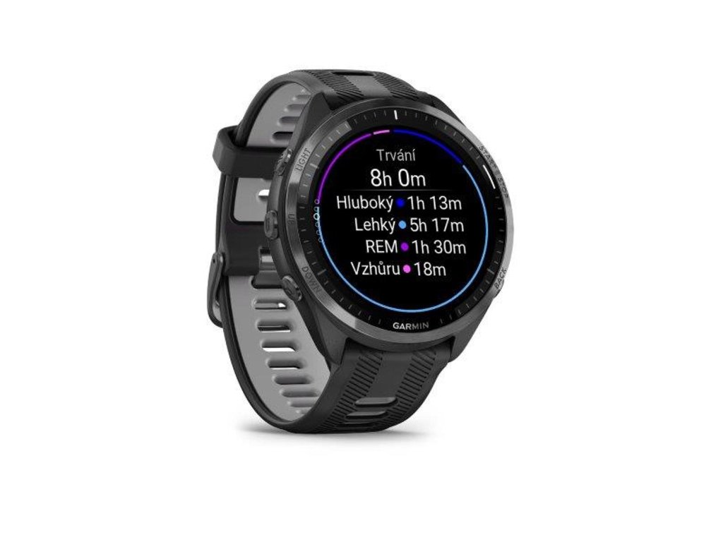 Garmin Forerunner 965 jsou prémiové, sportovní GPS hodinky pro výkonnostní a vrcholové sportovce, zejména běžce a triatlety. Nabízejí unikátní kombinaci funkcí pro všestranné měření sportovních výkonů, plánování a vyhodnocení tréninků a měření široké škály zdravotních veličin. K dispozici jsou také podrobné mapy a navigační funkce. Hodinky nabízí plnohodnotné duální ovládání pomocí tlačítek a dotykového AMOLED displeje krytého ze stran titanovou lunetou poskytující vyšší odolnost.