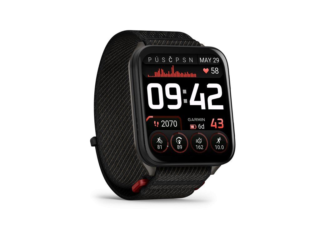 Prémiové chytré GPS hodinky v tenkém designu s bohatou kombinací sportovních, fitness a zdravotních funkcí, vhodné pro každodenní nošení a všestranné sportovní využití. Hranatý 2“ zářivý AMOLED displej krytý safírovým sklíčkem v 8 mm tenkém pouzdře s titanovým dnem, doplněný nylonovým řemínkem ComfortFit. Díky lehké konstrukci (40g) skvěle sedí na zápěstí. S výdrží baterie až 8 dní (v režimu chytrých hodinek) změříte a podrobně zaznamenáte většinu vašich běžných aktivit včetně běhu, plavání, cyklistiky, lyžování, silového tréninku a další. Díky předehraným mapovým podkladům můžete sledovat vaši polohu, navigovat se, nebo využít databázi golfových hřišť přímo v hodinkách. Přesné sledování běžeckých metrik, výkonu, srdečního tepu, kvality spánku, hladiny stresu či úrovně vaší energie pomocí funkce Body Battery, pak poskytuje ucelený přehled o vaší výkonnosti a zdravotním stavu. Jistě oceníte praktickou nastavitelnou LED svítilnu, ABC senzory, Bluetooth volání a příjem notifikací z Android i iOS telefonů či bezkontaktní platby Garmin Pay. V hodinkách nechybí ani ovládání hudby z telefonu a podpora streamovacích platforem, jako je Spotify, YouTube music a další.