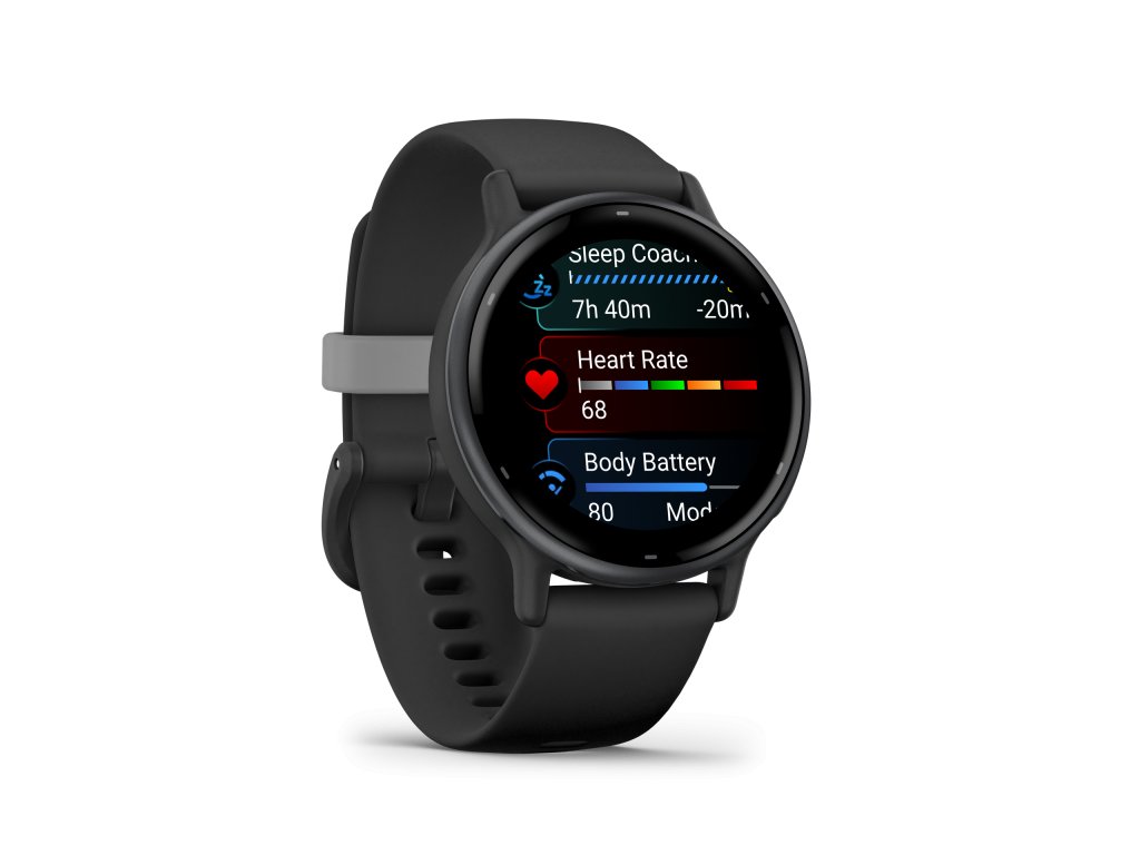 Hodinky vívoactive 5 ve dne i v noci ze zápěstí průběžně měří a zaznamenávají srdeční tep 1.