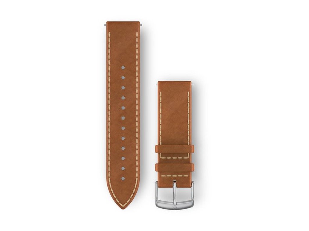 Kožený řemínek Quick Release 20 mm se stříbrnou přezkou pro hodinky Forerunner a Venu.