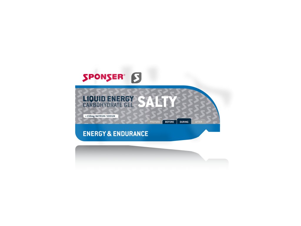SPONSER LIQUID ENERGY SALTY je vysoce koncentrovaný energetický gel se sodíkem a draslíkem. Poskytuje tělu rychle (glukóza) i pomaleji vstřebatelné (isomaltulóza, hydrolyzát ječmenného škrobu) sacharidy potřebné k dodání energie.